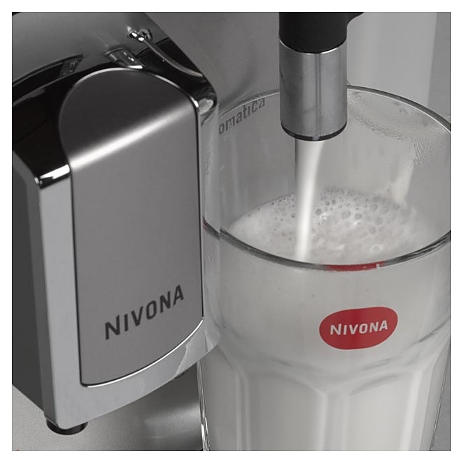Автоматическая кофемашина Nivona CafeRomatica 656 предназначена для приготовления разнообразных кофейных напитков в кофейнях, барах и ресторанах. Модель оснащена цветным цифровым дисплеем и дополнительным отсеком для кофейного порошка. Кофемолка изготовлена из закаленной стали. В комплект поставки входят фильтр для воды CLARIS, чистящие таблетки, молочный шланг, мерная ложка и прозрачный контейнер для молока. Особенности: