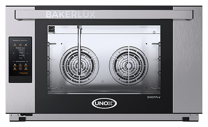 Печь конвекционная UNOX XEFT-04EU-ETDV серии BakerLux Shop.Pro предназначена для приготовления различных блюд, выпечки хлебобулочных и кондитерских изделий на предприятиях общественного питания и торговли, в пекарнях и кондитерских. Модель оснащена электронным управлением и светодиодной подсветкой. Легко открывающееся внутреннее стекло облегчают чистку и обеспечивает максимальную гигиену. Камера выполнена из нержавеющей стали, направляющие - из хромированной стали. Печь используется совместно с вытяжным зонтом UNOX XEKHT-HCEU. В комплект поставки входит набор «Starter Kit». Листы для выпечки в комплект поставки не входят и приобретаются отдельно. Модель не оснащена сливом и дренажным отверстием, доустановить их невозможно. Рекомендуется дополнительно приобрести водоумягчитель и фильтр-систему для очистки и смягчения воды. Режимы выпечки: