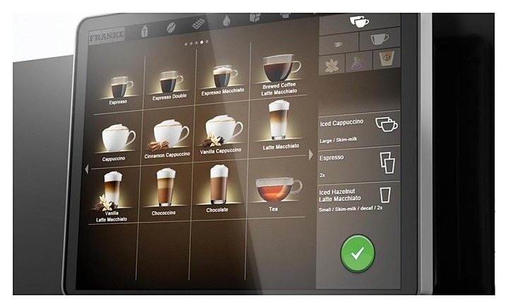 Кофемашина Franke A800 FM EC 1G H1 используется на предприятиях общественного питания и торговли, в офисах и отелях для приготовления чая, кофе и кофейных напитков. Модель оснащена интерактивным сенсорным экраном диагональю 10,4 дюйма с 3 различными интуитивно понятными режимами работы и возможностью демонстрации рекламных предложений.