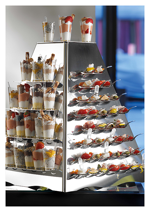 Этажерка для закусок Pintinox Пирамида 51133899 используется на предприятиях общественного питания и торговли, в барах, ресторанах и кафе для выкладки сыров, колбас, мясных и других видов закусок и продуктов. Изделие выполнено из нержавеющей стали. В комплект поставки входят 8 съемных полок. Ложки в комплект поставки не входят и приобретаются отдельно. Дополнительные характеристики:
