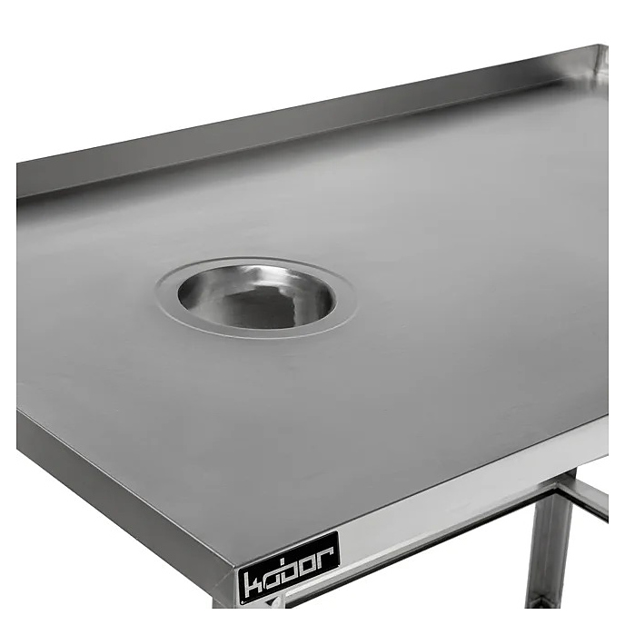 Производственный стол Кобор СРОБ-100/70/430 Л/П предназначен для раскатки теста, обработки ингредиентов для приготовления блюд и установки кухонных приборов на предприятиях общественного питания и торговли. Каркас выполнен из нержавеющего уголка AISI 430, столешница - из нержавеющей стали AISI 430 с усилением из ЛДСП. Расположение отверстия для сбора отходов может слева или справа. При заказе укажите желаемый вариант. Дополнительные характеристики: